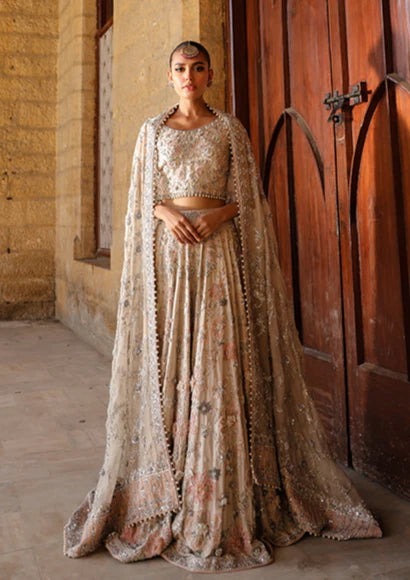 This elegant Bridal Lehenga Choli achieves the final ravishing look when paired with a delicate dupatta in premium organza. Embellished borders, floral motifs, and silver details make this organza dupatta a perfect choice for this Bridal Lehenga Choli Dress.