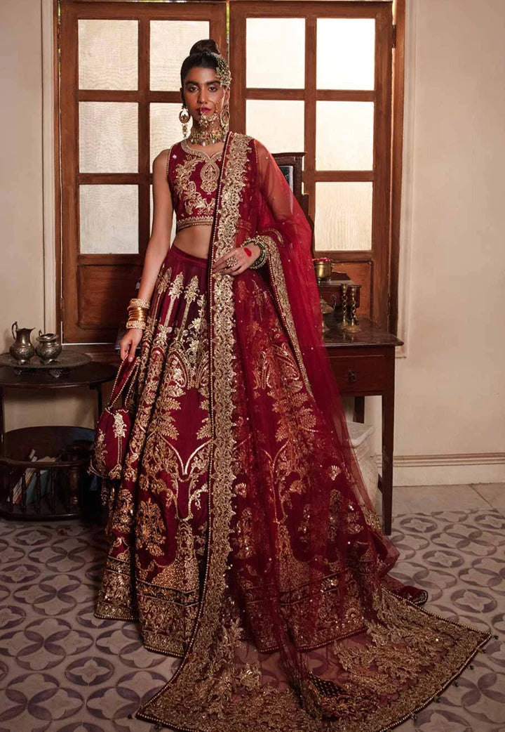 The Bridal Lehenga has a massive flare and it gives the gorgeous bride a breathtaking look on the big day. The Maroon Lehenga is fully adorned with intricate designs and fine details of goldwork and shimmering embellishments. Sequins, motifs, and tilla make this Lehenga Dress a chic choice for the wedding.