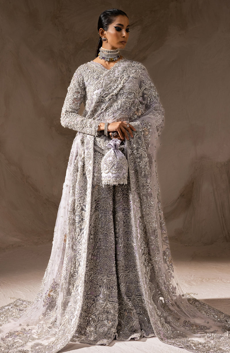 Our bridal couture is characterized by intricate hand embellishments, gentle, feminine color palettes, and a seamless fusion of timeless craftsmanship with contemporary sensibility. Feel free to connect with one of our designers using the provided WhatsApp link for comprehensive insights into your outfit's composition and care. Your dream attire awaits personalized guidance.