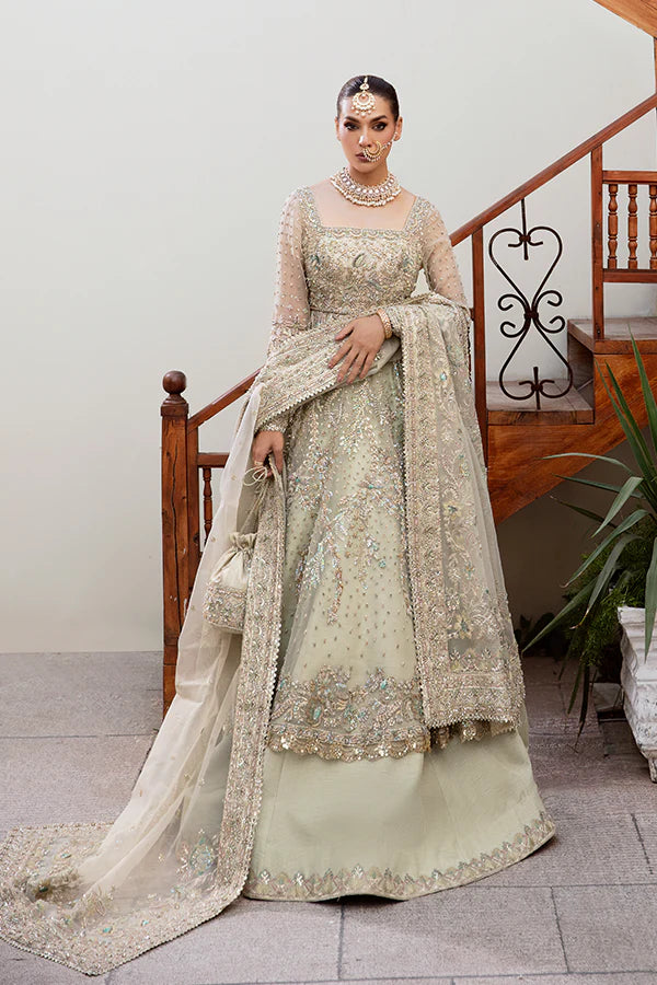 Pakistani Bridal Outfit in Frock Lehenga Dupatta Style is a glamorous attire that will the gorgeous bride a flawless traditional look on the wedding. Lavish designs and hand-crafted details of embellishments make this stunning Pakistani Bridal Dress an epitome of beauty and grace.