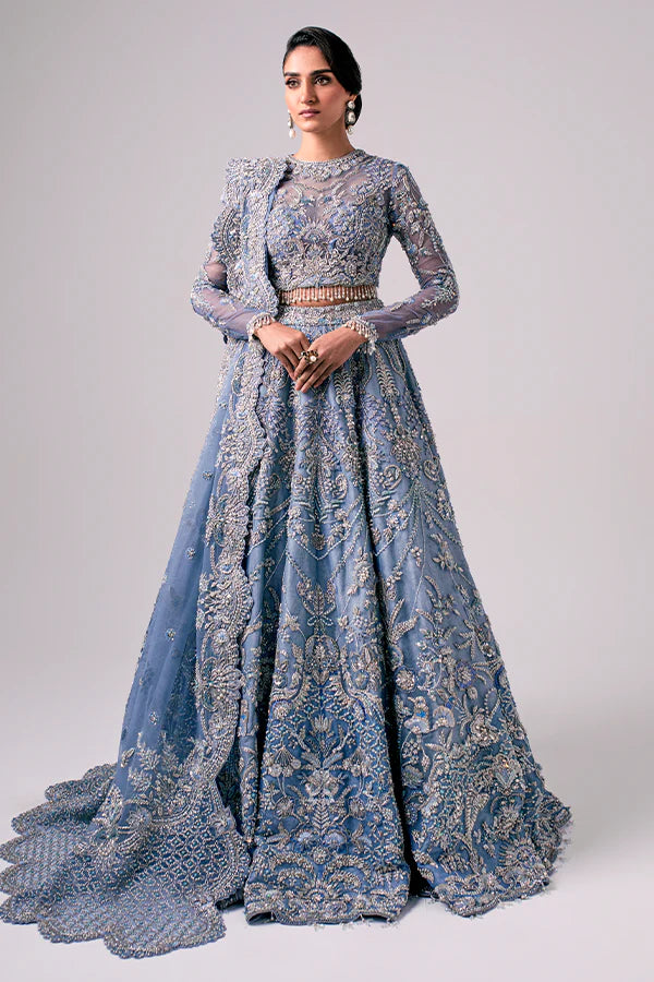 Pakistani Wedding Dress in Bridal Blue Lehenga Style is a breathtaking masterpiece, paired with choli and dupatta. Hand-crafted details of embellishments make this stunning Pakistani Bridal Dress an epitome of beauty and your foremost priority for the big day to have a stunning bridal look.